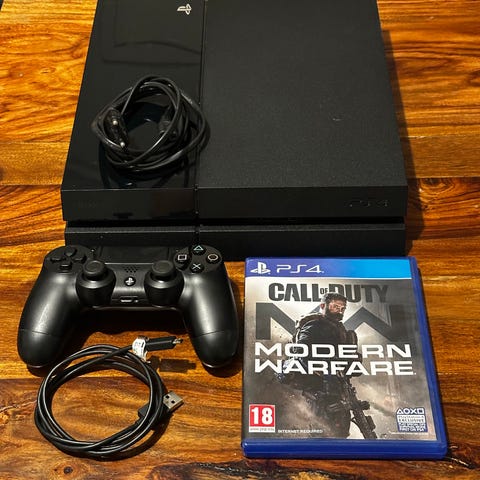 Playstation 4 alustettu ja valmis käyttöön. Toimii moitteettomasti. Dualshock 4 ohjaimen vasemman tatin kumi on kulunut, mutta toimii virheettömästi.