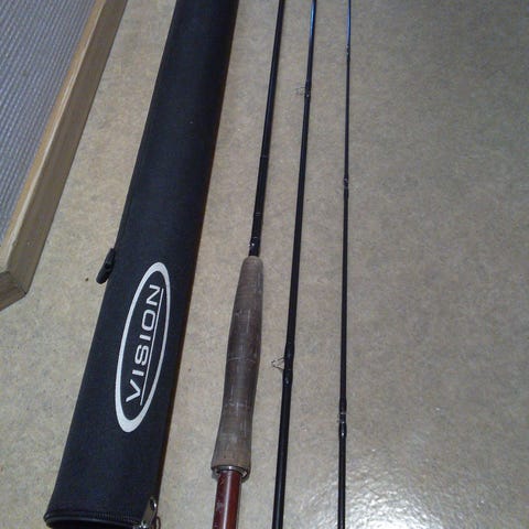 #9/10 luokan kahdenkäden perhovapa lohihommiin. On naarmua ja käytön jälkeä muutenkin. Varavapana varmasti aivan passeli.