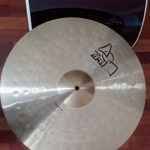 Otsikon mukainen halpa Crash symbaali nurkista lojumasta. Ei ole nyt tässä käsillä, eikäoo kuvaa puhelimessa, mutta jos kiinnostuit, niin kysy. Saan kyllä kuvia laitettua.