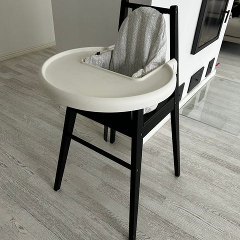 Yleisilmeeltään siisti. Lähempää tarkastellen tarjottimen pinta naarmuinen. Jalkatuki mennyt rikki, saa halutessaan mukaan jos haluaa jollain keinolla yrittää korjata. Menee hyvin ilman jalkatukeakin vauvalle ja taaperolle niin kauan kun tarjotin ja vyöt ovat paikallaan. Menee myös juniorituolina ilman tarjotinta ja vöitä, jos haluaa korjata jalkatuen.
