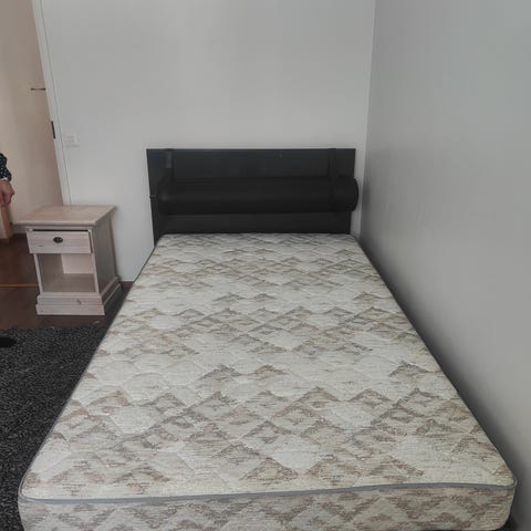 Myydään kuormalavvoista tehty 120cm sänky ja joustinpatja. Kuikassa.