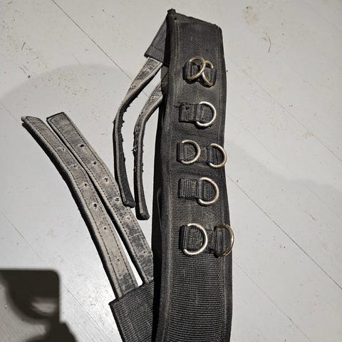 Ehjä, ok kunnossa oleva juoksutusvyö hevoselle+ alaosa. Sopii suoraan selkään, pehmustettu ja tuettu selkäosa. Haku Lempyy, Suonenjoki.