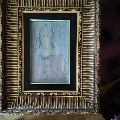 Piirros on hyvässä kunnossa, kehys on hieman kulunut.