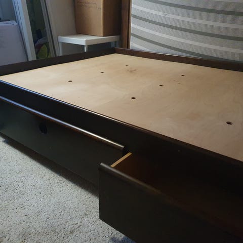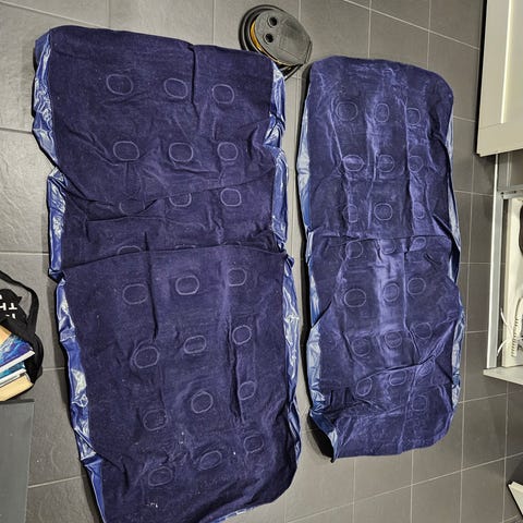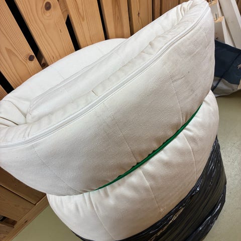 Vanhanko, mutta testin mukaan ehjä ilmapatja vierasvuoteeksi.