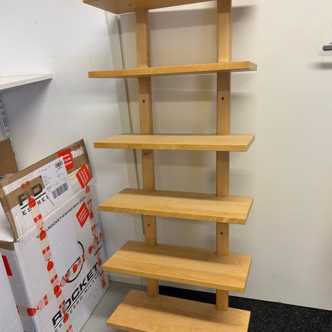Annetaan sisävarastossa olleet hyllyt. Isompi on korkeudeltaan 185cm ja lyhyempi hylly on korkeudeltaan 171cm. Muut mitat saat kysymällä.