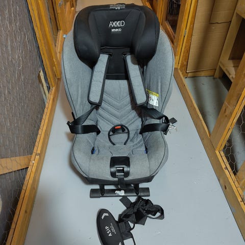 Axkid Wolmax turvaistuin, enimmäispaino 25 kg. Istuimessa on viisipistevaljaat ja selkä menosuuntaan asennus. Väri on musta. Sopii lapsille noin 9–25 kg painoluokassa. Istuimessa on tukijalka ja kiinnitys auton turvavöillä. Päällinen on irrotettava ja pestävä valmistajan ohjeiden mukaan.
