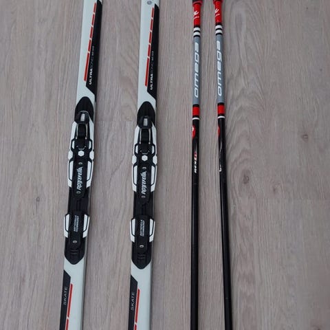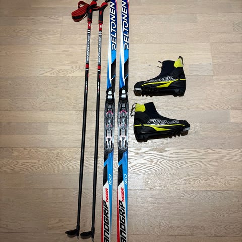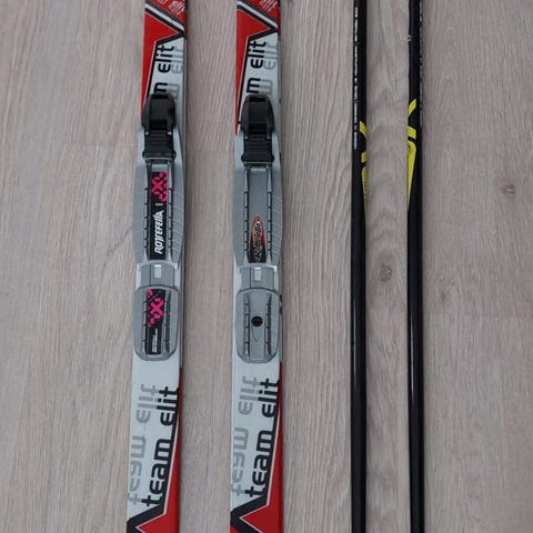 Peltosen sukset pituus 140cm, sauvat 120cm. Side nnn
