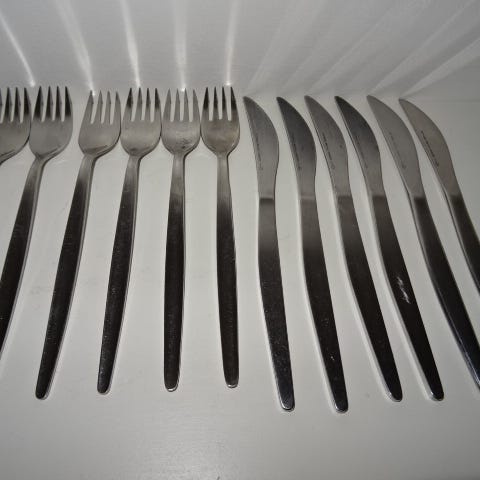 1960-luvun pitkät cocktail- tai jälkiruokalusikat. Ruostumaton teräs 18/8. Made in Finland.