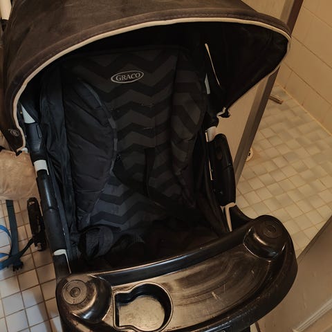 Beemoo matkarattaat harmaalla istuinosalla ja kuomulla. Rattaissa on säädettävä selkänoja, viisipistevaljaat ja irrotettava turvakaari. Jalkatuki ja kuomu tarjoavat lisämukavuutta lapselle. Alla on tavarakori pienten kantamusten kuljettamiseen.