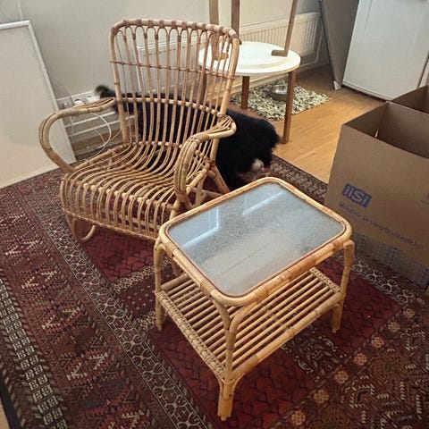 Vanha musta korituoli / rottinkituoli