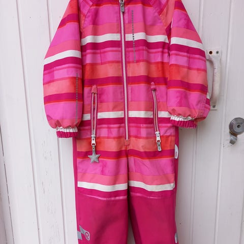Myydään käytetty Reimatecin vk-haalari. Koko 98. Väri kirkas pinkki, kuva vääristää vaaleammaksi. Hieman jo kuluneempi, mutta esim. peppu ja polvet siistissä kunnossa eikä haalarissa ole reikiä. Heijastimet kuluneet.