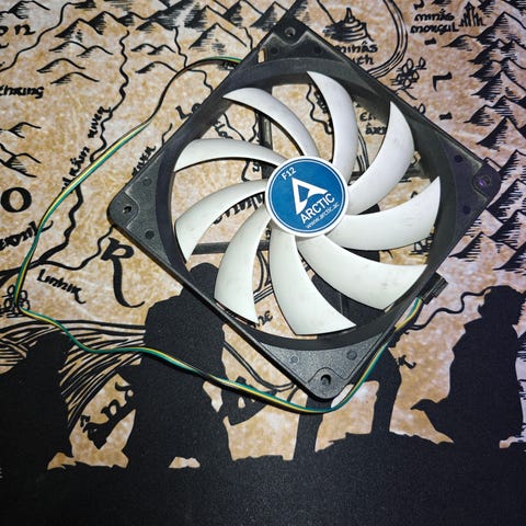 Avaamaton tietokoneen tuuletin omassa paketissaan.