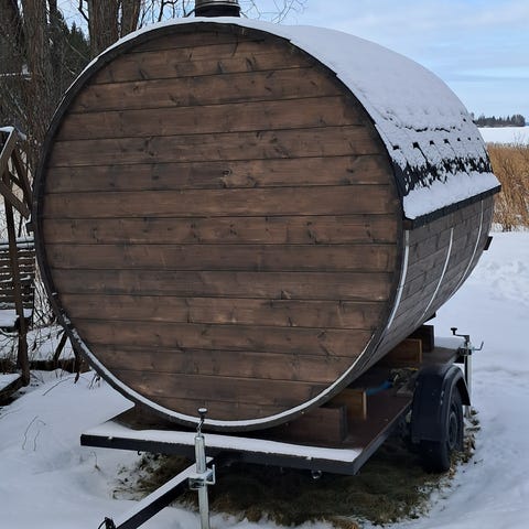 Nyt olisi vuokralle sympaattisen tynnyrisaunan lempeitä löylyjä tarjolla.