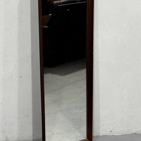 Koristeellinen vanha peili, jossa on yksityiskohtainen puinen kehys. Peilin koko on noin 55 cm leveä ja 1325cm korkea.