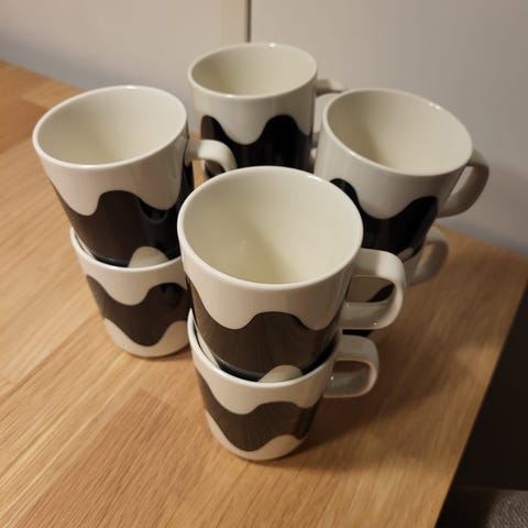 Myydään uudenveroiset marimekko lokki mukit. Koko on 2,5dl,käyttöönottopestyjä, mutta säilytetty hyllyssä. Postitus myös ok.
