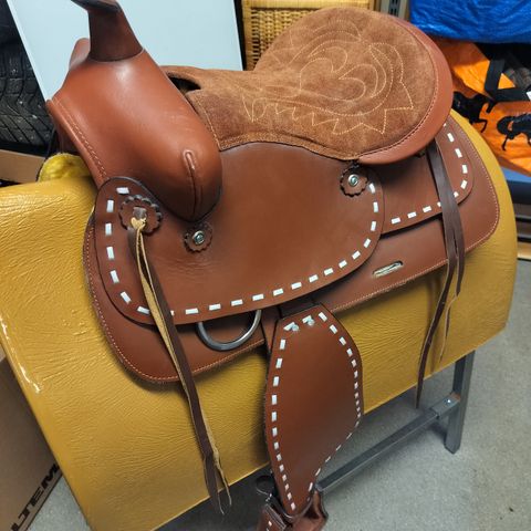 Big Horn 305 lännensatula 16" sekä Cavallo huopa ja vyö. Sopii suoraan selkään, matala säkäiselle hevoselle. Ollut irlannincobilla käytössä. Nouto tai postitus.