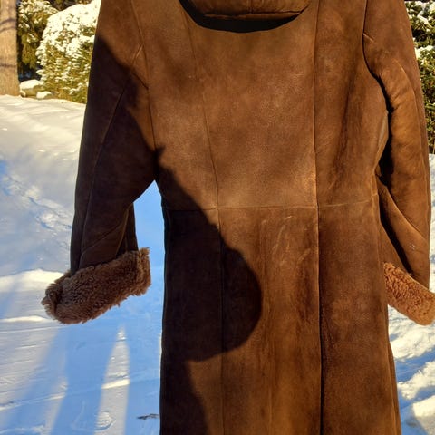 Hyväkuntoinen Friittalan talviturkki lämpimällä karvavuorilla ja hupulla. Kuvassa väri haaleampi. Hieman A-mallinen. Mahtuu povekkaammallekin. Lämmin ja melko kevyt. Tule kokeilemaan.