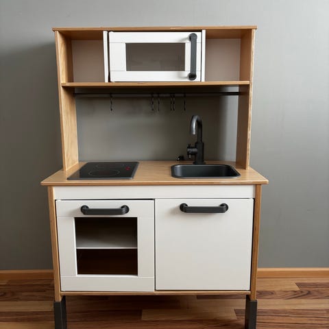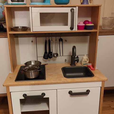 Ikean leikkikeittiö, perus siistissä kunnossa. Hellan valot ei pala,pitäisi vaihtaa patterit. Mukaan kuvassa näkyvät keittiötarvikkeet. Nouto Hiltulanlahti.