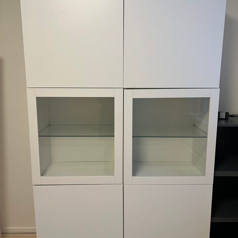 Ylimääräiseksi jäänyt Ikean Bestå kaappi. Sisällä lisäksi 4kpl hyllylevyjä.