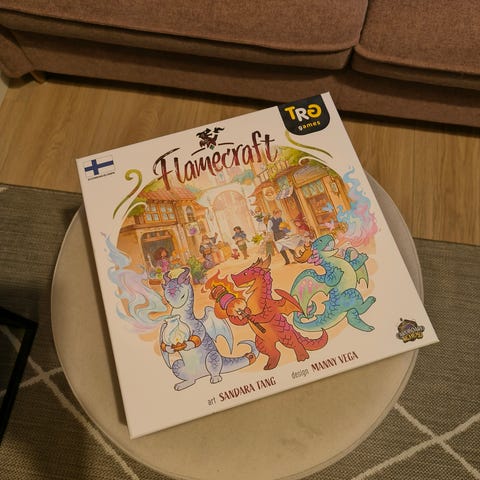 Myydään uusi pelaamaton lautapeli Flamecraft. Flamecraft on vuoden 2023 lautapeli ja todella söpöllä kuvituksella tehty.