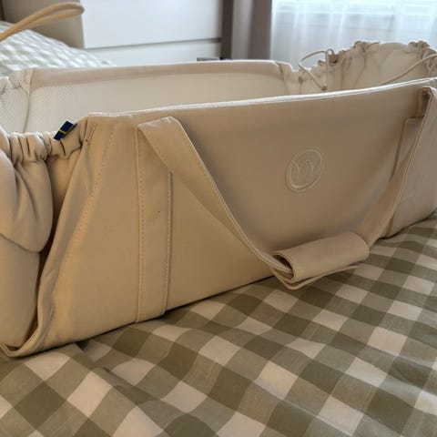 Najell SleepCarrier X ja kosteussuoja. Ostettu keväällä 2025, ollut käytössä yhdellä vauvalla muutaman kuukauden. Kaikin puolin ehjä ja siisti, kosteussuojassa yksi pieni tahra(viim.kuva), joka ei lähtenyt pesussa. Kantokoppaa ei ole pesty. Ent. kissatalous.