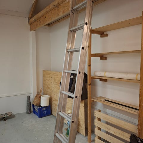 Metallinen tikasrunko, jossa kaksi askelmaa ja kaarevat yläosat. Sopii esimerkiksi varaosaksi tai käytettäväksi osana tikkaita tai muuta rakennelmaa. Materiaali vaikuttaa olevan metallia, mahdollisesti terästä tai alumiinia. Korkeus ja tarkat mitat eivät käy ilmi kuvasta.