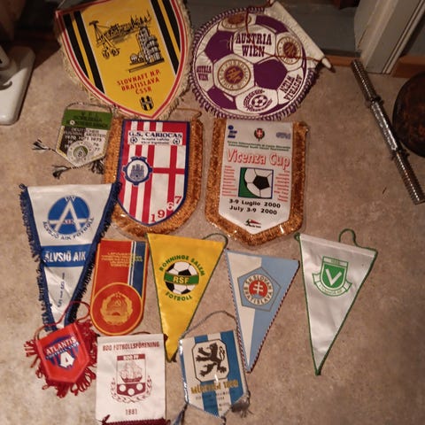 Jalkapalloseurojen viiripaketti, jossa useita erikokoisia ja -värisiä kangasviirejä eri suomalaisista seuroista ja turnauksista. Viireissä on seurojen ja tapahtumien logoja, tekstejä ja tunnusvärejä. Sopii esimerkiksi keräilyyn, sisustukseen tai seurojen muistoviireiksi. Viirit ovat pääasiassa kolmion ja kilven muotoisia, ja osassa on hapsut alareunassa tai reunoilla.