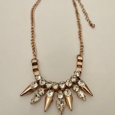 Kaksi kaulakorua, hopean ja kullanvärinen. Minimalistinen tyyli. Voi käyttää yhtä aikaa kerroksittain, pystyy säätämään toisen hieman kireämmälle ja toisen löysemmäksi. Ostettu muistaakseni H&M.