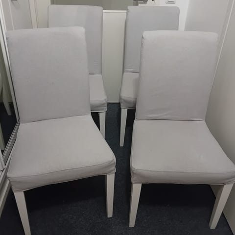 Tuolit on hyvässä kunnossa ja hyvin pidetyt. Irroitettavat ja juuri pesussa olleet päälliset.