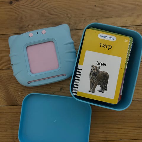 Opettavainen peli nimeltä Scrabble venäjäksi. 9 pahvista pelilautaa, myös yksi läpinäkyvä pelilauta, johon on aseteltu kirjaimia. Koko on noin 35 × 35 cm, joten toimituskulut ovat kalliimpia.