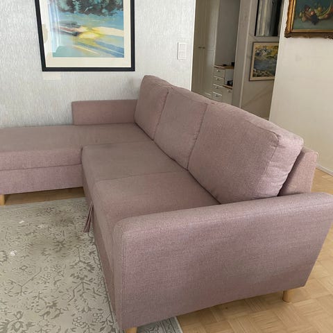 Noin 7 vuotta vanha divaanisohva jonka divaanin kätisyys on vaihdettavissa. Vaikka sohva iäkäs niin on kaikinpuolin ehjä. Päälliset pestäviä. Pehmusteet foamia. Sohvan kokonaisleveys on 1970, pituus divaaniosan kohdalta 1500, ilman divaania 870. Korkeus 830 tyynyjen kanssa ja 685 ilman. Divaani lähtee näppärästi irti ja sohva on varsin kevyt kantaa😁