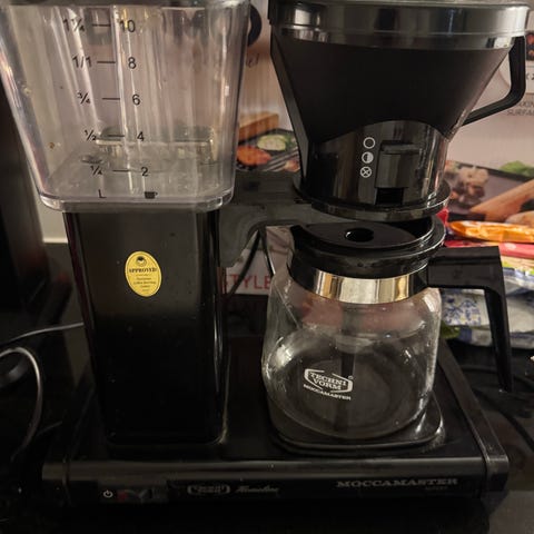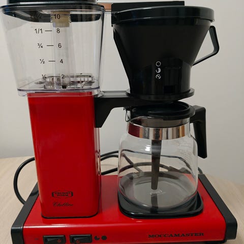 Söpö Moccamaster. Ainut miinus on, että molemmat painikkeet tahtovat painautua sisään (ks. kuvat). Saa avattua alapuolelta ja oletettavasti korjattua, omat taidot ei riitä niin myyn. Muuten toimii ihan normaalisti.
