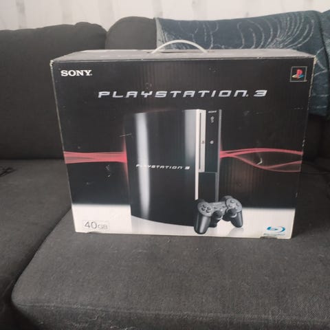 Laatikossaan oleva Playstation / PS3 konsoli, sisäpahvit mukana, Hdmi-johto, virtajohto, latausjohto, ohjain sekä kaukosäädin (elokuvia varten).