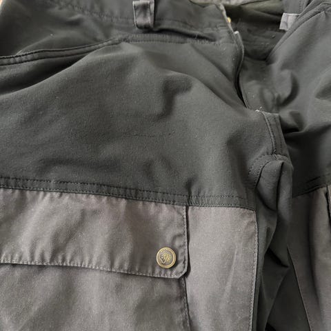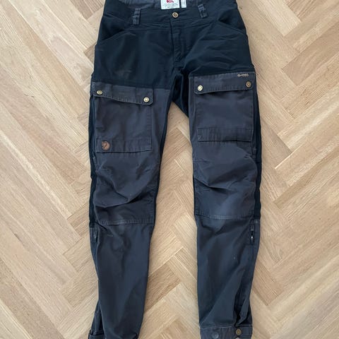 Myyn itselleni pieneksi jääneet Fjällun Keb-vaellushousut. Hyvässä käytetyssä kunnossa edelleen, haikein mielin luovun näistä lempparivaelluahousuistani. Vyötärön napin ja toisen lahkeen alaosassa pientä värjäymää, ei vaikuta käyttöön. Lahkeensuut myös vähän vaalentuneet, ei vaikuta housujen ominaisuuksiin. Voi vahata kestävämmiksi/vedenpitävämmiksi Fjällun omalla G1000-vahalla. MMM.