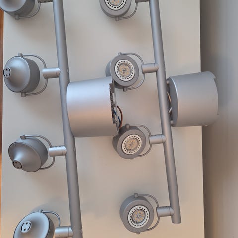 Kaksi kattovalaisinta yhdessä tai erikseen. Mukaan ripustinsarja ja led lamput. Valon kirkkautta ja sävyä pystyy säätämään kaukosäätimellä. 1 varjostinnja ripustin setti 20e kaukosäädin 5e. Jos ostaa koko setin niin kaikki yhteensä 40