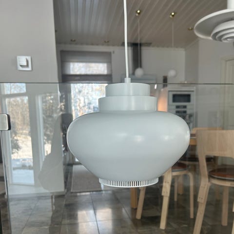 Artek A330S riippuvalaisin, suunnittelija Alvar Aalto. Valkoinen metallinen kattovalaisin, joka toimii 220–240 V / 50 Hz jännitteellä. Valaisimessa on alareunassa tuuletusaukot ja se kiinnitetään kattoon johdon ja kattokupin avulla. Sopii yleisvalaistukseen esimerkiksi keittiöön, ruokailutilaan tai olohuoneeseen.