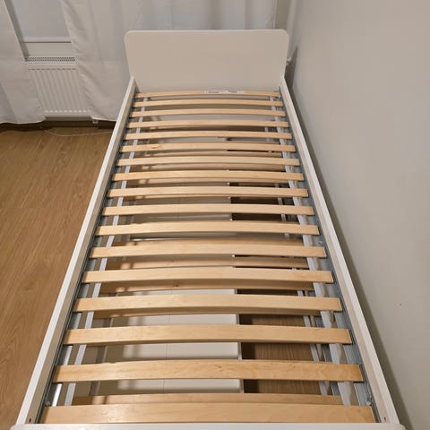 Myydään IKEA SLÄKT -sänky (90x200 cm), väri valkoinen.