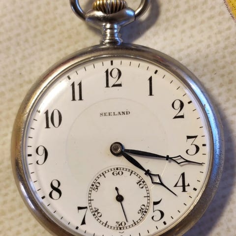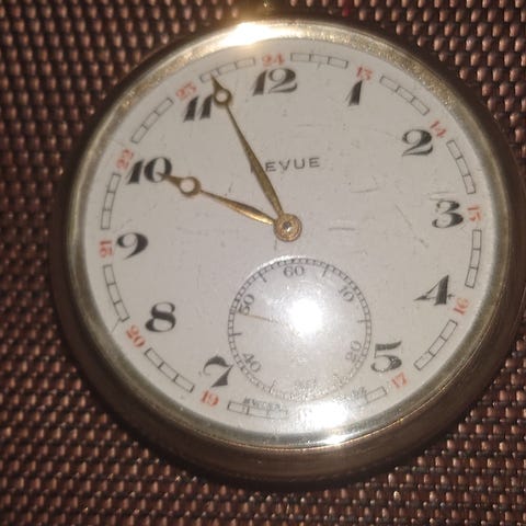 Siisti ja toimiva 15 kivinen Revue sveitsiläinen taskukello. Kellossa teräskuoret.