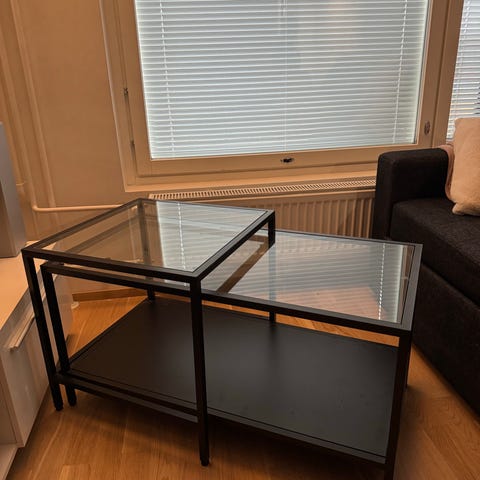 Ikean vittsjö sohvapöytä setti pöytä . Siistit! Mitat komenteissa. Lisätietoa löytyy ikean sivuilta.