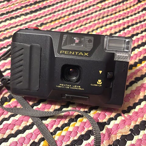 Moottoriperä Pentaxin filmikameroihin (ME ja ME Super). Toimivuutta ei testattu, luultavasti toimii.