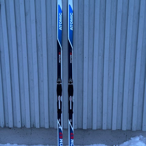 Atomic Pro perinteisen maastohiihtosukset siteillä. Sukset on varustettu Atomic-siteillä, jotka on asennettu valmiiksi. Väri pääosin musta sinisillä ja valkoisilla yksityiskohdilla. Materiaalina komposiittirakenne, karvapohjat.