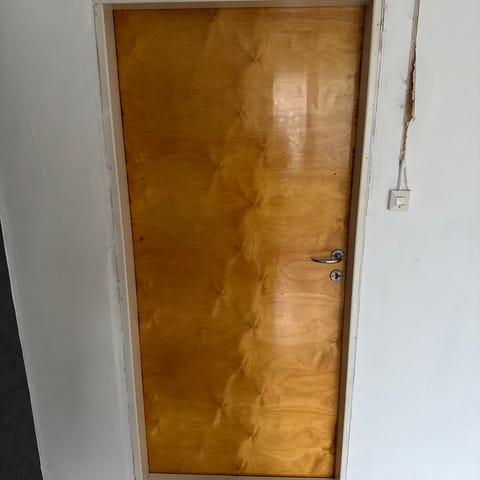 Hakijan on otettava KAIKKI samalla kerralla mukaan. Osa laminaatista yläkerrassa ja kulku kapeaa portaikkoa pitkin.