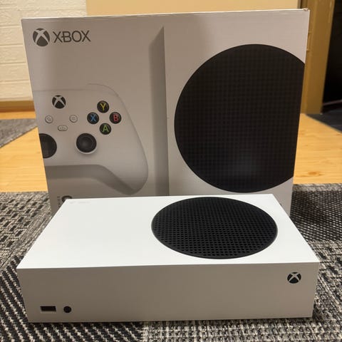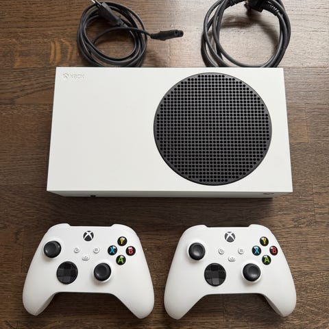 Xbox Series S (512GB) ohjaimella ja lataustelakalla