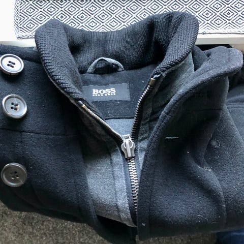 Hugo Boss miesten pikkutakki, koko 54. Väri musta. Materiaali 100 % villa.