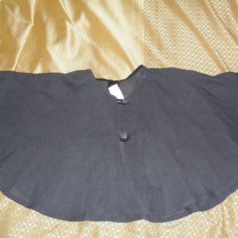 -Myydään musta pehmeä viitta pituus 59-106 olkapäältä tupsuihin, v- kaula-aukko, viskoosi/polyesteri/polyamidi