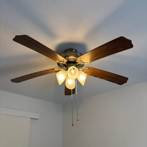 Myynnissä siistikuntoinen kattotuuletin, jossa on viisi lapaa ja neljä E14‑kantaista lamppua (polttimot sis. hintaan). Tuuletin tuo huoneeseen tehokasta ilmankiertoa ja samalla toimii kätevänä yleisvalona. Tuulettimen pyörimissuunta on vaihdettavissa ja siinä on kolme eri pyörimisnopeutta. Sopii hyvin esimerkiksi olohuoneeseen, makuuhuoneeseen tai mökille.