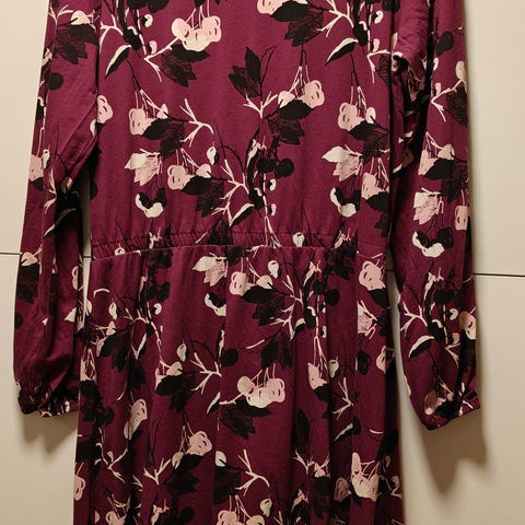 Oikein hyväkuntoinen, parempana pidetty Nosh Melanie mekko koossa M. Ei kovin montaa kertaa ole pesty/pidetty. Väri seesami. Ei taskuja. Vajaamittaiset hihat. Kai-kai 50 cm, olka-helma pituus n. 105 cm. Vohvelipintaista 97% puuvillaa, 3% elastaania. Lähikuva pinnasta vääristää väriä. Tahroja, tummentumia tmv. huomautettavaa ei ole. Eläintalous.