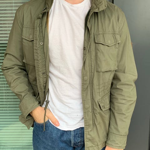 m65 field jacket Tupla vetoketju, monta taskua. Kiinnitys napeilla ja vetoketjulla.