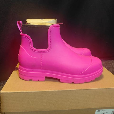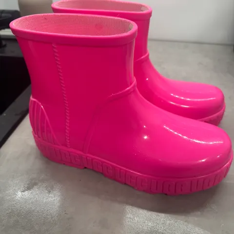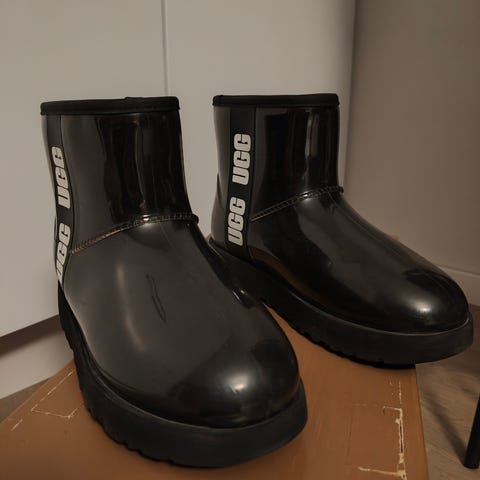 Myydään UGG Drizzlita Clear kumisaappaat pinkillä pohjallisella ja pörrösukilla. Koko 37,5.