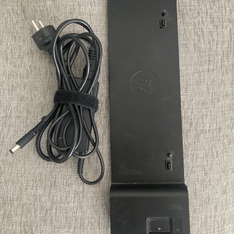 HP 2013 UltraSlim Docking Station ja virtalähde.